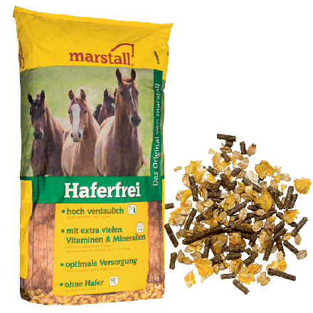 Marstall Haferfrei- pašaras be avižų, sukurtas pagal žirgų augintojų ir veisėjų pageidavimus! Jau 25m. tai vieni iš populiariausių pašarų, skirtas pagerinti kasdieninį žirgo mitybos racioną. Tai pašaras puikiai papildantis kiekvieno žirgo mitybos racioną naudingomis medžiagomis ir mikroelementais, nesvarbu ką žirgas veikia: tik ganosi, gauna nedidelį ar vidutinį krūvį. Pašaras praturtinti padidinta mineralinių medžiagų bei vitaminų norma, pilnavertiškai aprūpindamas kasdieninius žirgo poreikius.. Pašarą sudaro hidroterminiu būdu apdoroti grūdai, dėl to pašaras yra lengvai virškinamas ir maksimaliai įsisavinamas.Pašarą galima normuoti pagal individualius poreikius, galima maišyti su kitais grūdais pagal asmeninius poreikius. Arba duoti kaip pagrindinį pašarą prie šieno, visais atvejais sulauksite puikių rezultatų!